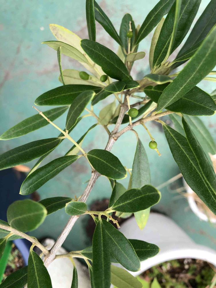 小さなオリーブの実がついてます。