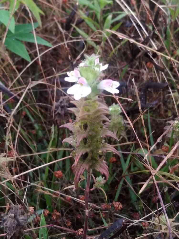 シソ科の一種かなと思うのですが、すぐ横に同じ様な見かけの黄色い花を咲かしてるのもはえてました。別でアップします。