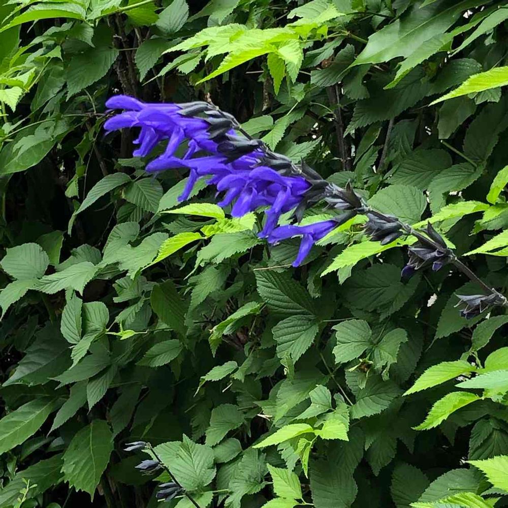 毎年勝手に咲くからと、母が名前も知らずに庭にキープの花。人工知能サンが名前を教えてくれました👍👍👍初めて聞く名前!メドーセージ。。