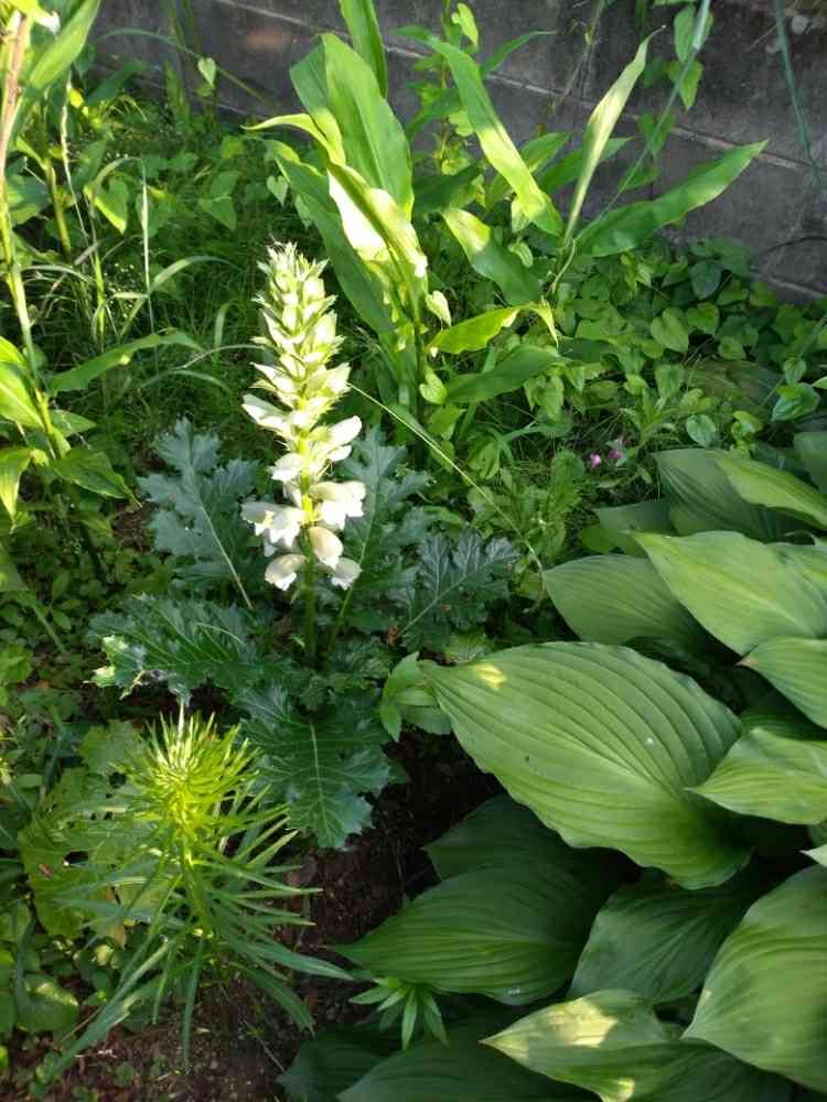 庭のすみっコ、アカンサスモリスが咲いてくれました✨