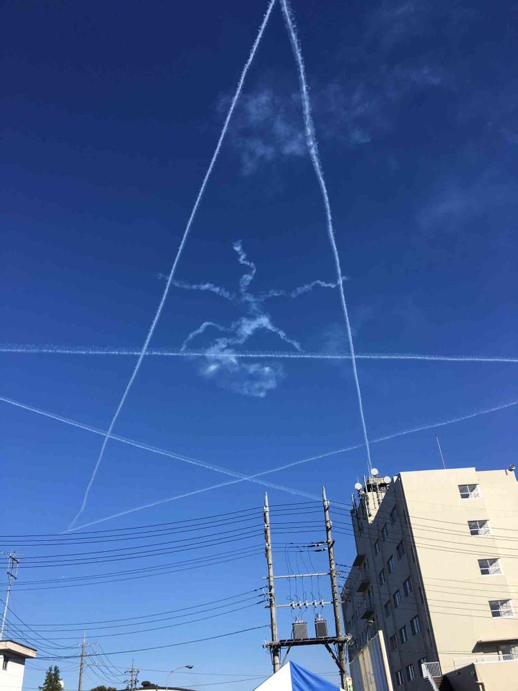 去年は行けなかったけど埼玉県の入間基地で文化の日にアクロバット飛行やるの かんちチャマの😊💘な♥️型もやってくれたよん カッケーって かんちでした😁