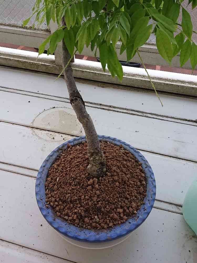 今朝ほど投稿した藤ですが、鉢の表土を取り除き、オルトランDX粒剤を散布の上、赤玉土をかけてみました。