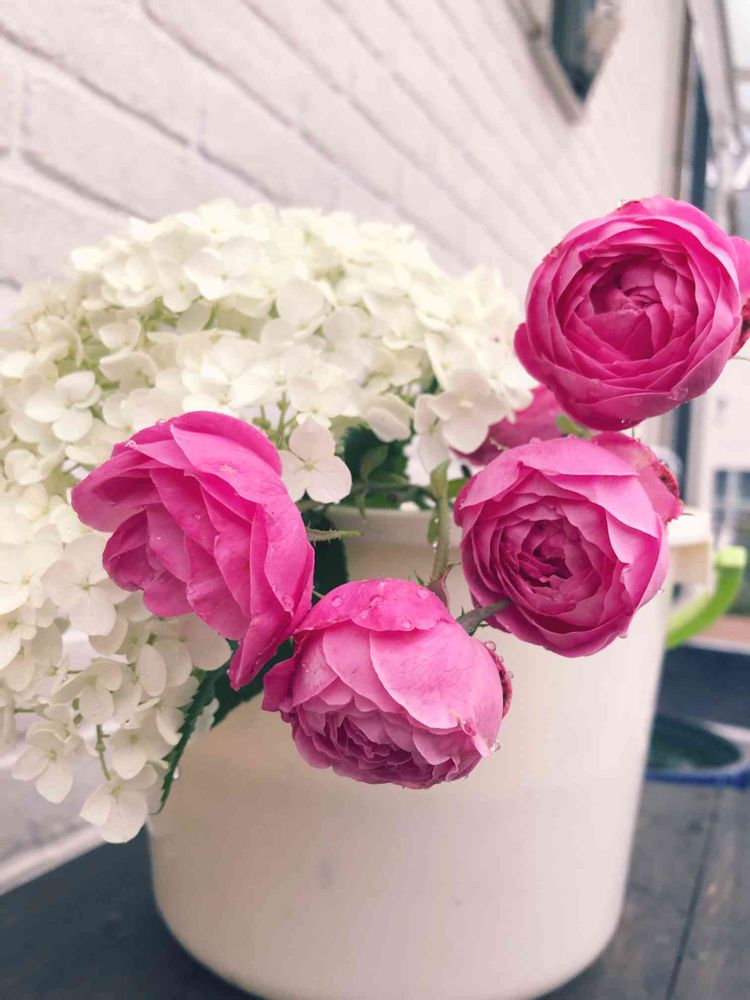 アナベルとラレーヌビクトリアのコラボ。ラレーヌさんの上品な香りとコロンとした姿に愛着しかない!