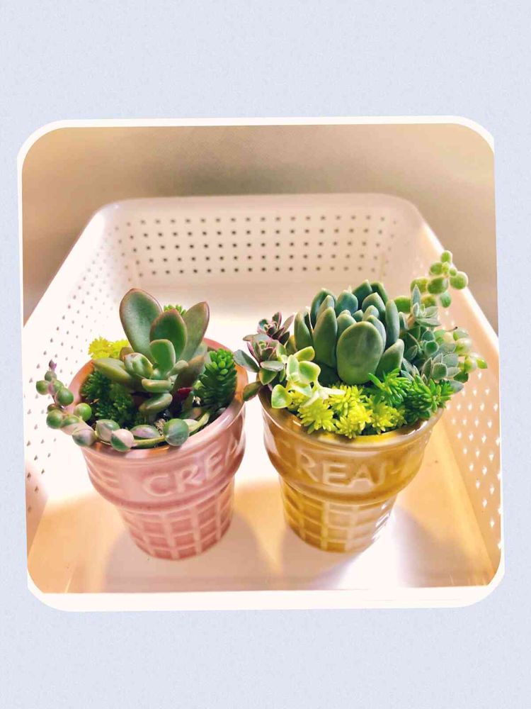 右側、一向にふっくらしないフーケリーをセダムと一緒に植えてみました😊