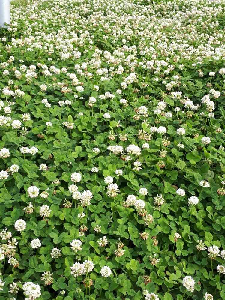 マクドの駐車場がシロツメクサの花盛り🙆⤴⤴