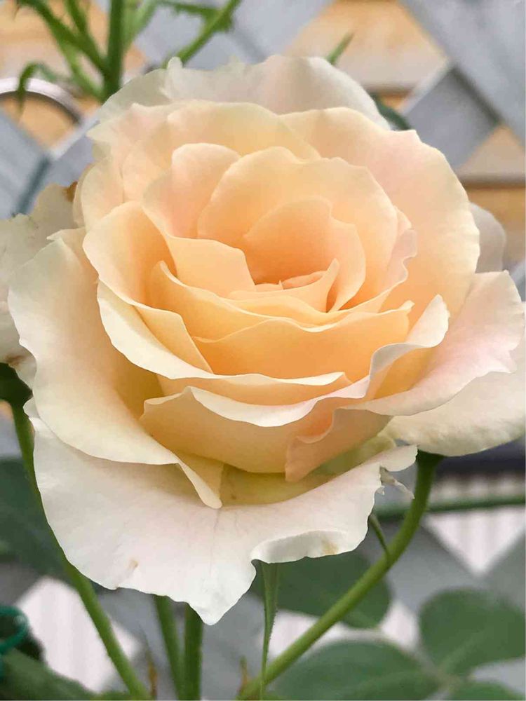 杏色がいいですよね〜。年と共につるバラは大変ですが、咲くとやっぱり嬉しいです。千円はお得でしたね。😄