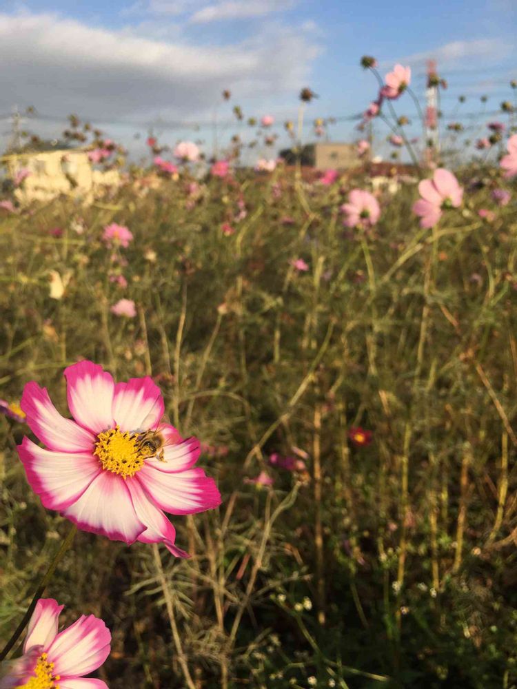 近所を散歩がてらコスモス畑をのぞいてきました。
