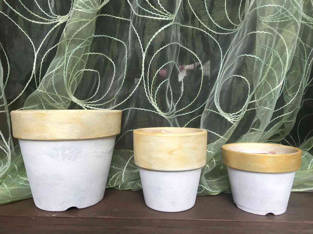 雨降りが続いてたので、昨日とおとといは鉢のリメイクをしてみました*(^o^)/*