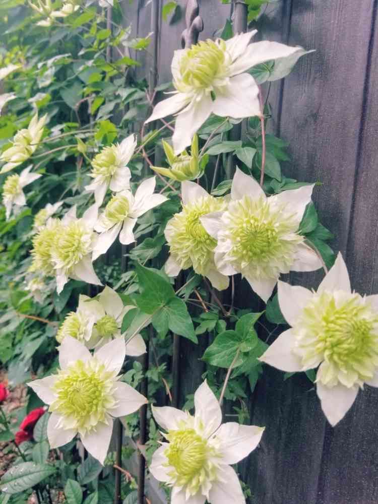 クレマチスは昨年から育てております☺️我が家では白万重が玄関脇で華やかさを演出してくれています。