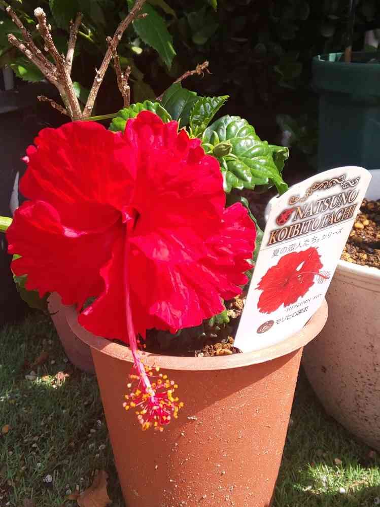 夏の恋人たちシリーズのハイビスカスヘッブバーンレッド咲きました🌺