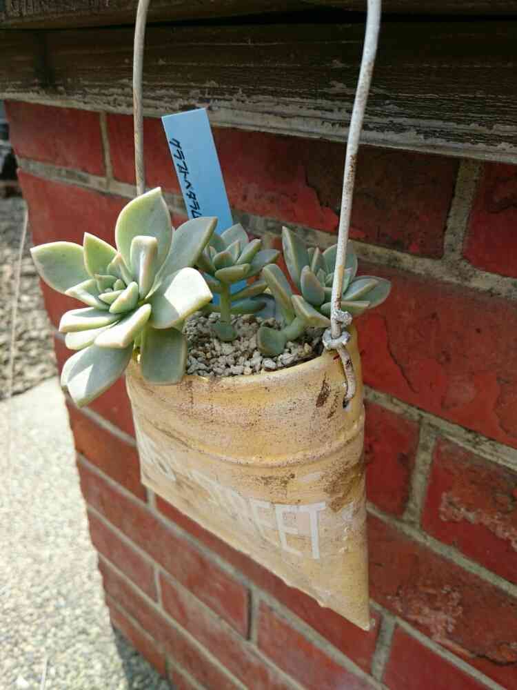 海苔の缶を半分に切ってバケツ型にしたリメ缶に姫朧月を。