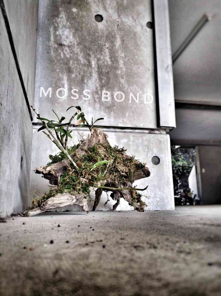2.流木などくっつけたいものに先にボンドを軽く塗り苔ボンドを優しく乗せていきます。