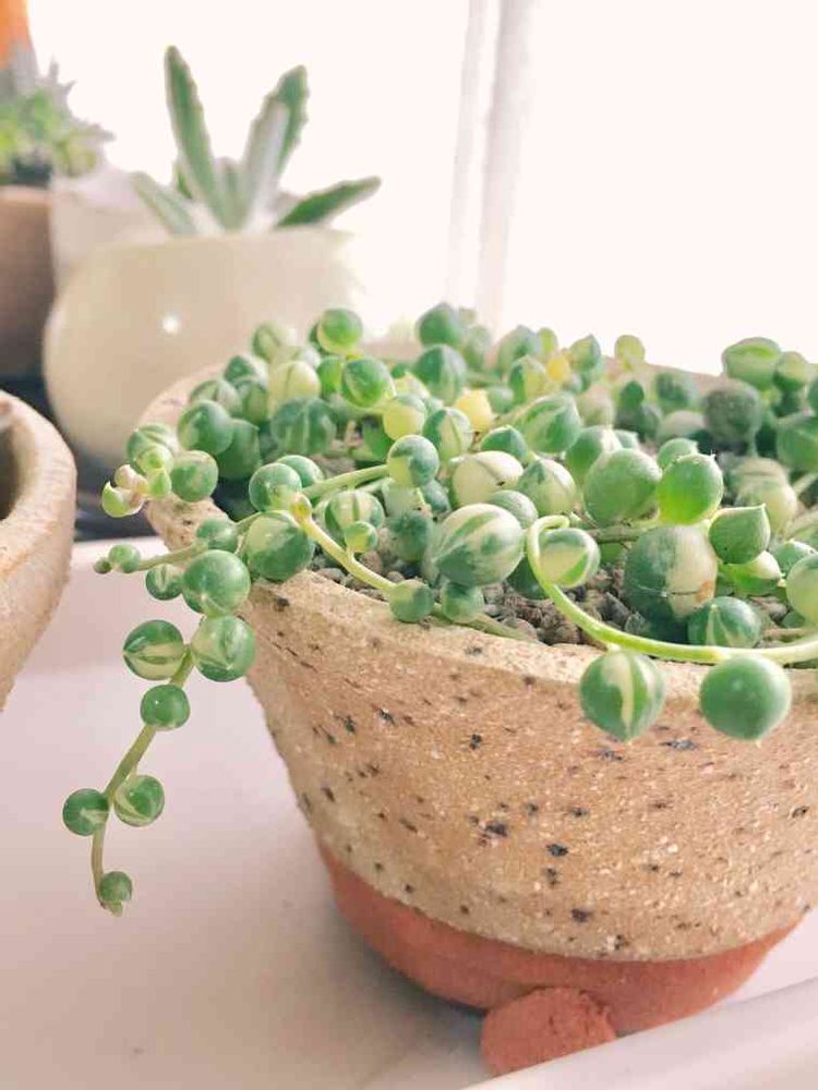 窓辺,多肉植物,斑入りグリーンネックレス♡の投稿画像