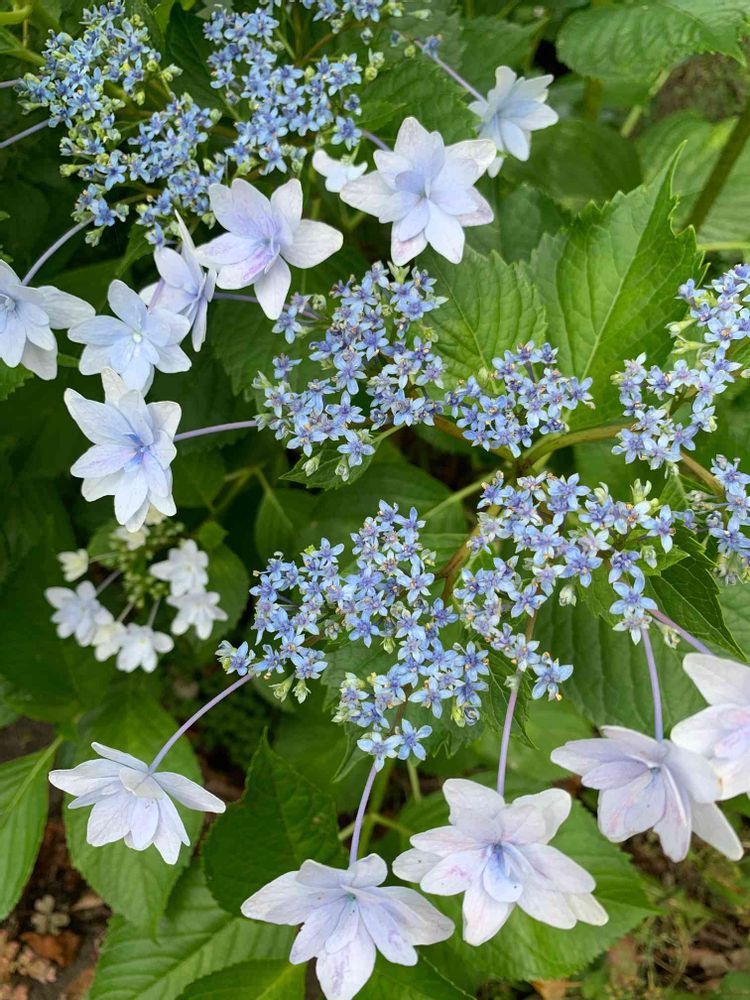 ガクアジサイ💠って中心部分のプチプチが花の蕾で周りがガクですよねー。一般的な紫陽花とは型も違っていて個性的ですね〜•*¨*•.¸¸♬︎