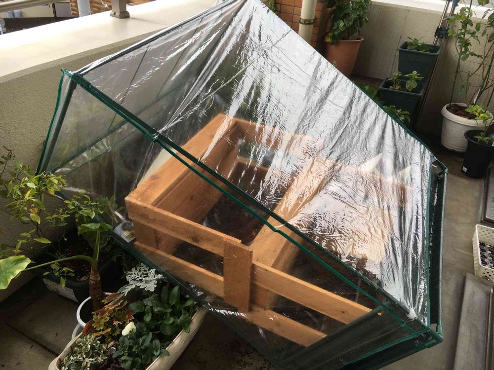 昨夜の強風で簡易温室ごと多肉棚が倒れてた〜T^T