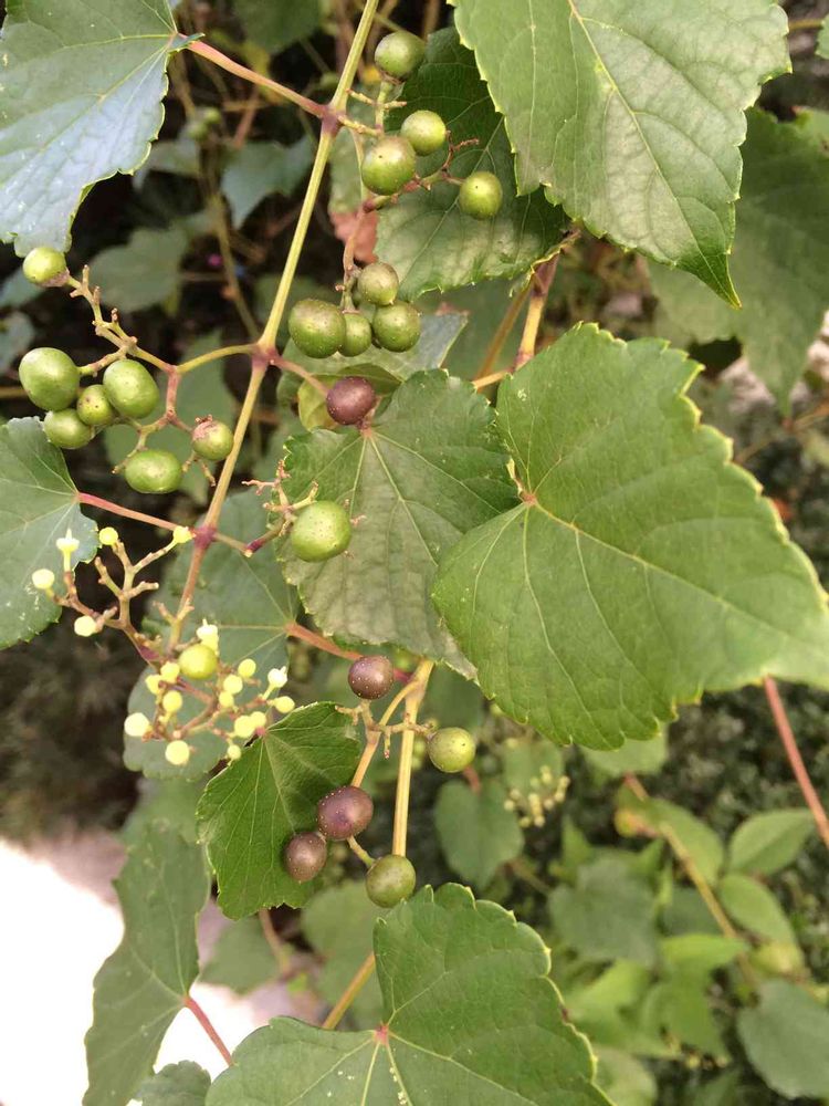 さん 野葡萄ってあるんですね、早速ネットで山葡萄と野葡萄の違いを調べてみました☆山葡萄は葉の裏に毛が生えていて綿のようになっていて、野葡萄は毛がないらしいの。実も山葡萄は葉の下、野葡萄は葉の上になるんだって!今 お昼休みだから早速見に行って来ました=͟͟͞͞ʕ•̫͡•ʔ=͟͟͞͞ 結果、野葡萄と判明しました(^o^)ありがとうございました♡