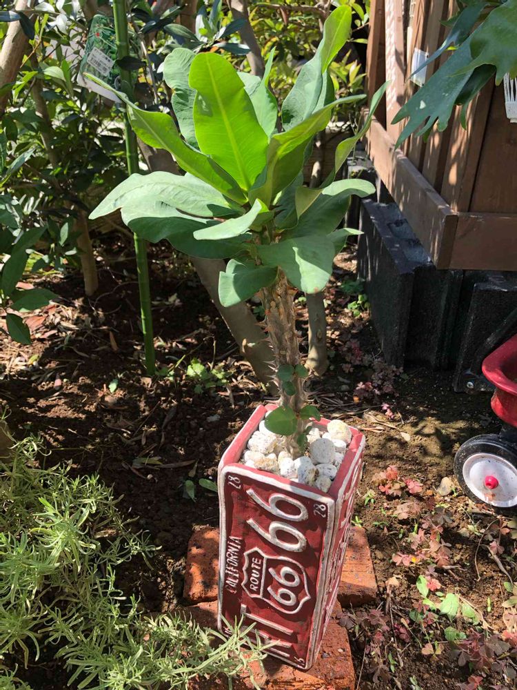 プラ鉢に入ってたけど、頭が重くてひっくり返ってたので、タナベさんで見つけた鉢に植え替え❤️