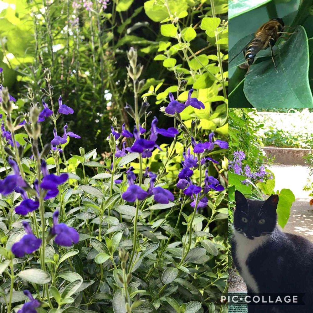 ご近所にチェリーセージの沢山咲いているお庭があって、ピンク、黄色、白、紫、オレンジ色のお花がありましたよ😍
