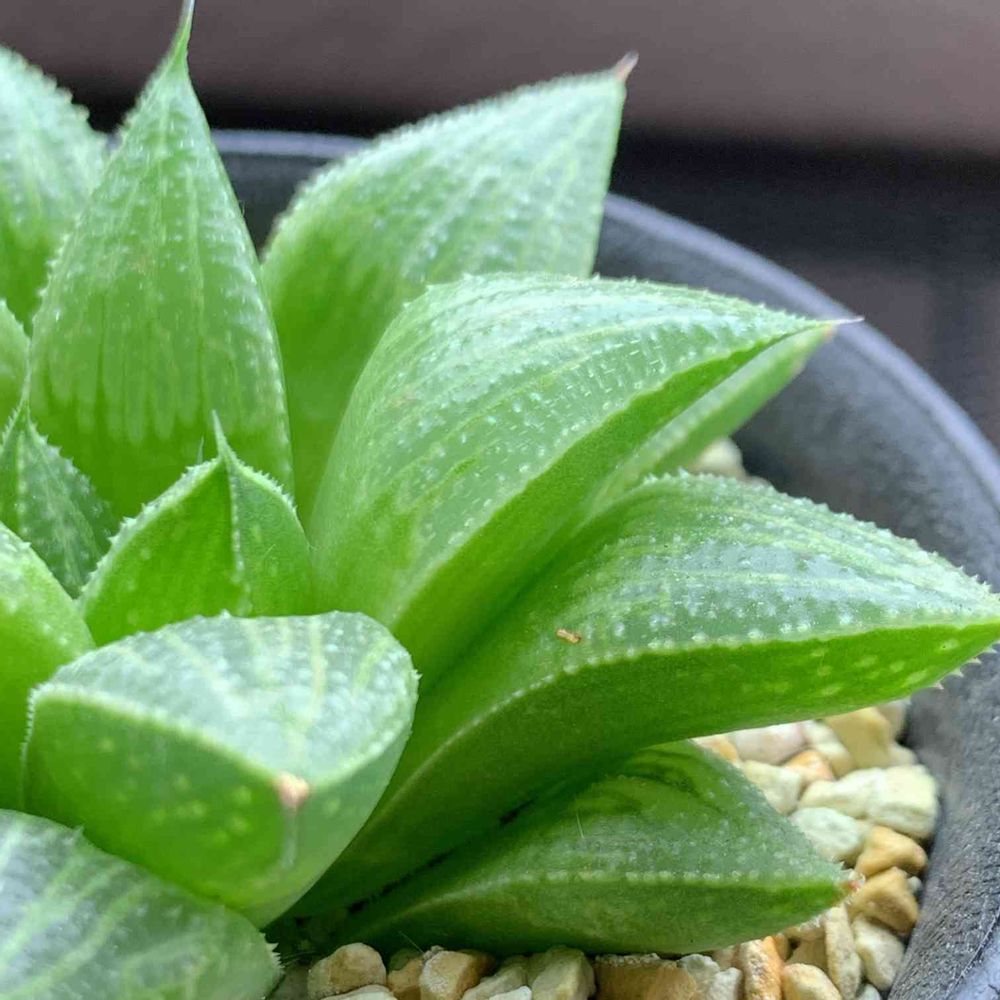 ハオルチアさんを初めて見た時は、つぶつぶを壊してはいけないと触るのが怖かったのですが、印象と違って硬かったのでびっくりでした!
