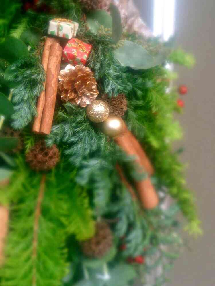今年のクリスマスは生のコニファーでスワッグ作りました~♪