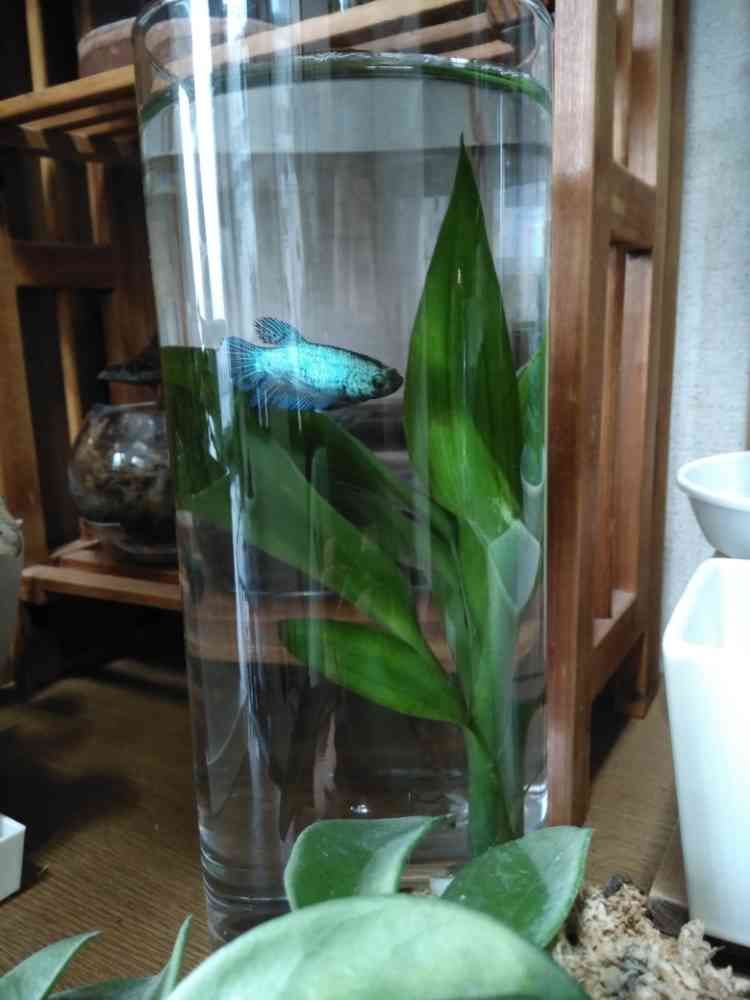先日お迎えしたベタのマリンちゃんです。水草はドラセナです!