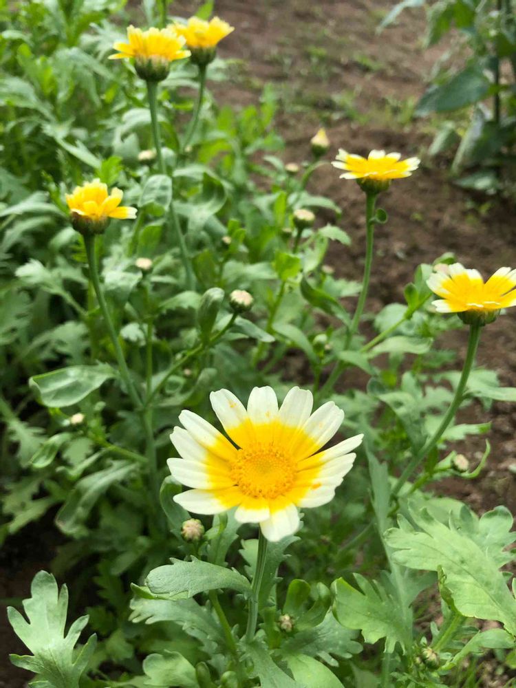 生でも食べれる春菊を毎年育てて、今年は多く撒きすぎたので、花を鑑賞しています♡😍