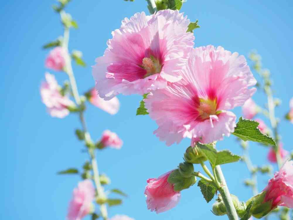 ブルースカイにピンクで可愛いタチアオイがマッチして、とても綺麗ですね~💗