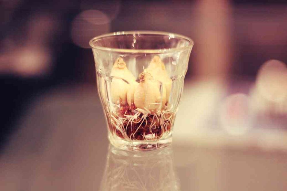 ネットで調べてみたら、水を入れるだけで良いのですが、3つの球根がうまく並ばなかったので、下に水苔を敷きました😊