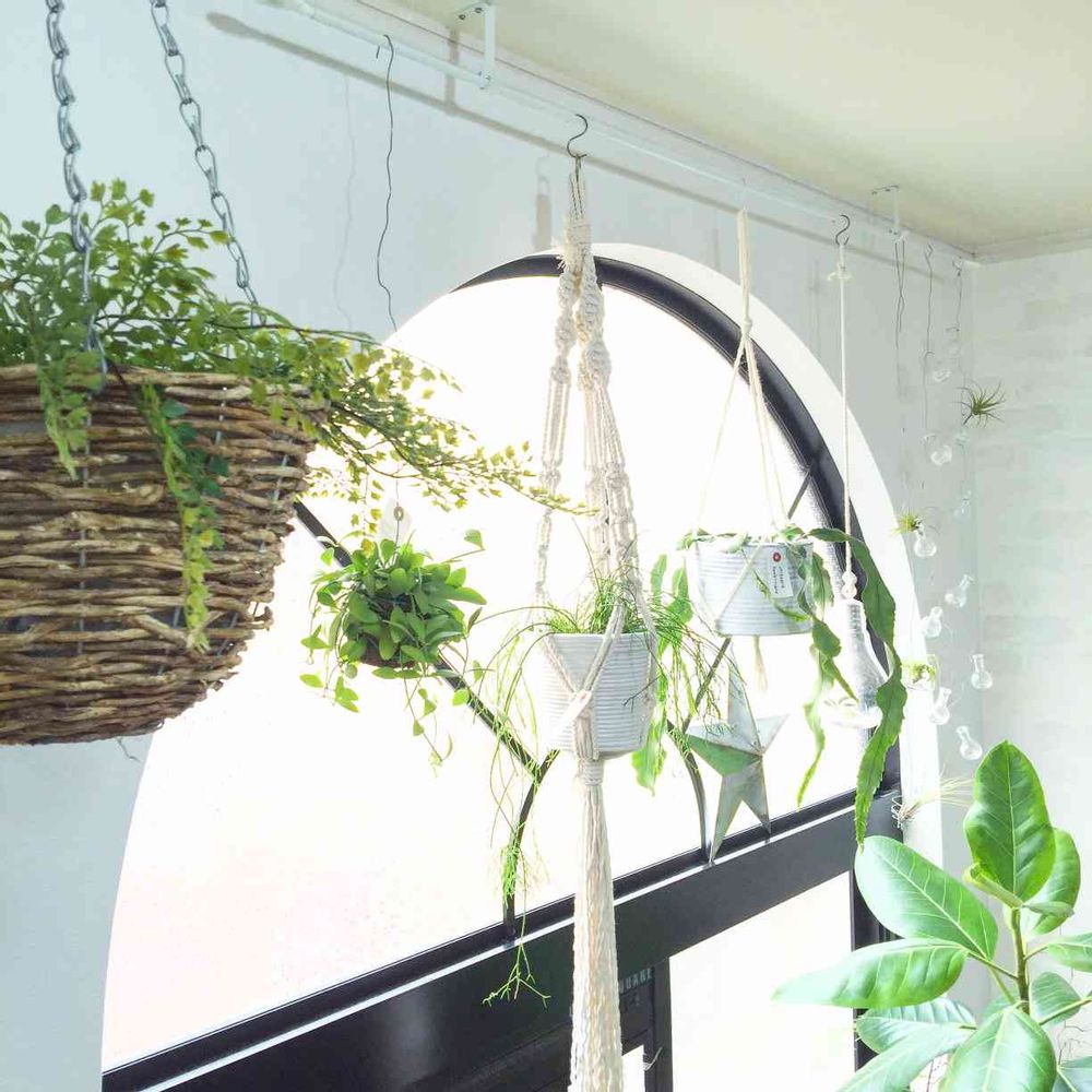 植物たちといっしょにガラス瓶などもぶらさげたら光があたるとキラキラして綺麗です^_^
