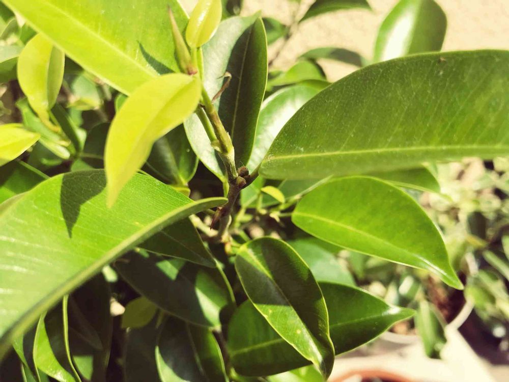 ベンジャミンに花芽が!日光と雨によく当ててあげるとやっぱり喜ぶんだな