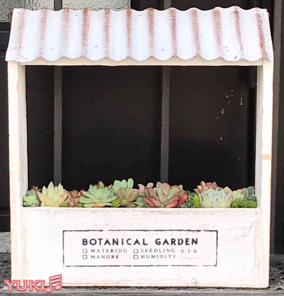 少し前に良く行く雑貨屋さんで見つけた屋根付きのウッドプランター🥰素材不足で、とりあえずな寄せ植えになっちゃったけど💦笑笑