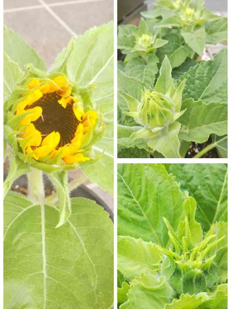同じ日に種をまいたミニひまわり〈小夏〉と〈夏物語〉