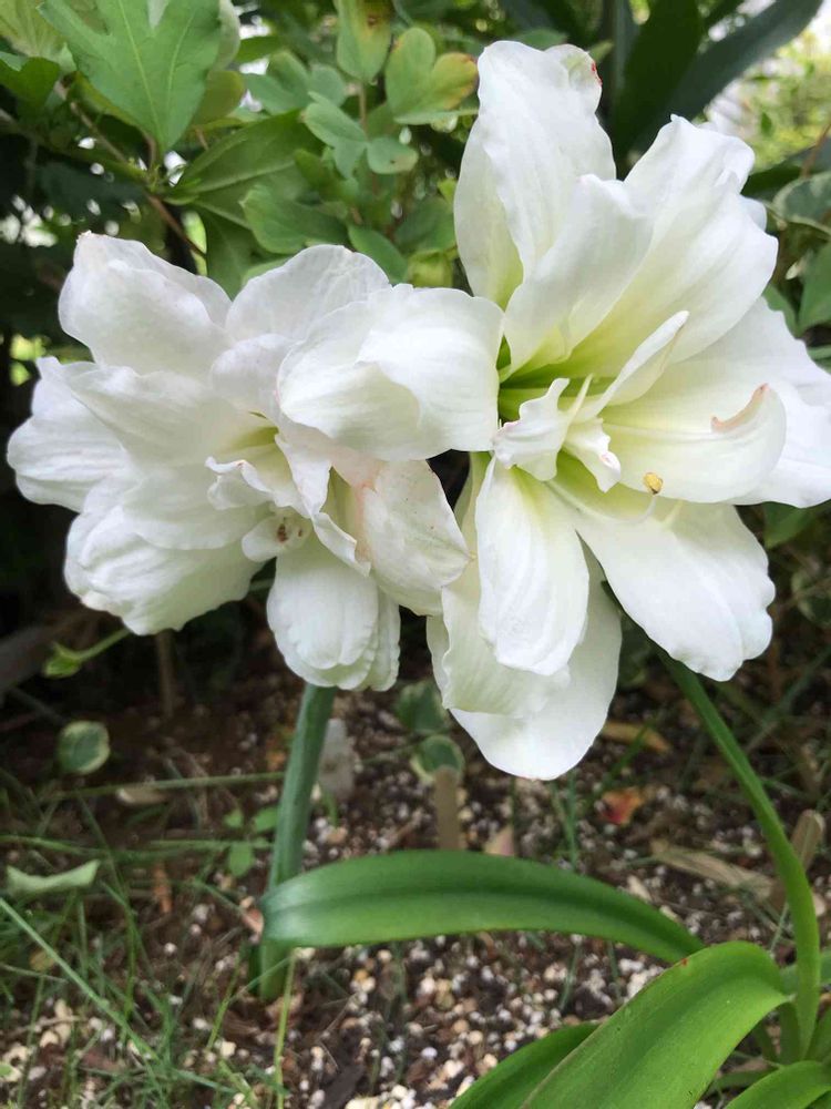 ガーデンアマリリス、葉も無いのに花茎だけニョキっと上がり咲きました😳