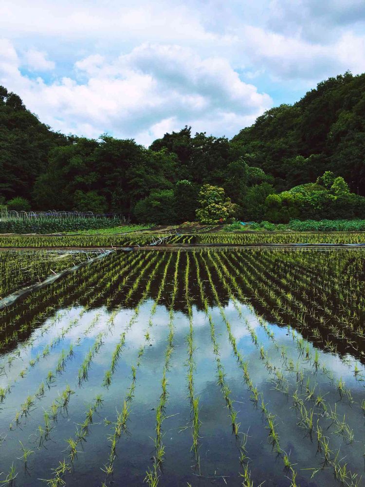 こんばんは🙇 田んぼに映える空、奥の畑、素敵です〰