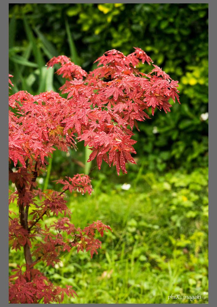 イロハモモジの赤い新緑。モミジの仲間には,紅葉の時の様な色の新葉がでるものが有りますね。緑の新緑のものとの違いはどこにあるのかな。と思いました。