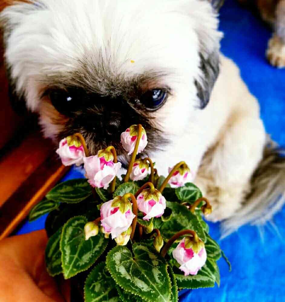 かわいいなぁ、ピンクがちょっとのぞいて、ワンちゃん、におい嗅いでる?