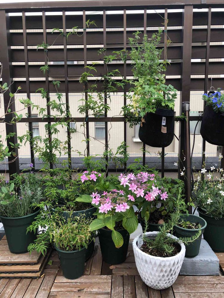 バルコニー/ベランダ,アジサイ,ハゴロモジャスミンの投稿画像