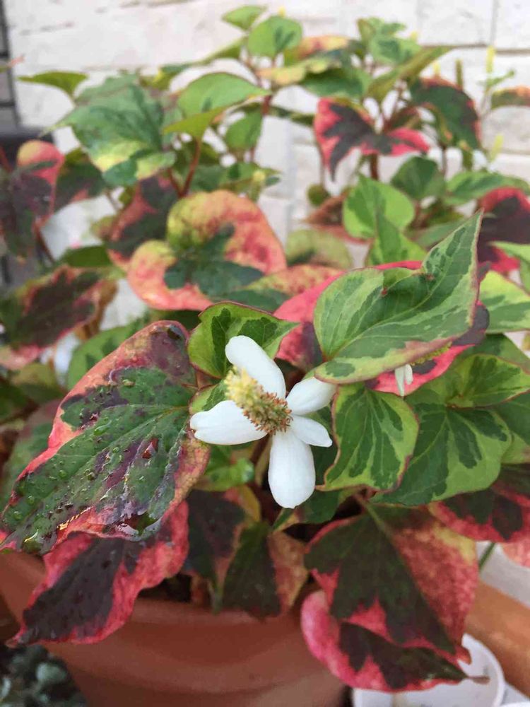 斑入りドクダミだよっていただいたものですが、日の当たる場所に置いたらみるみる真っ赤に‼️