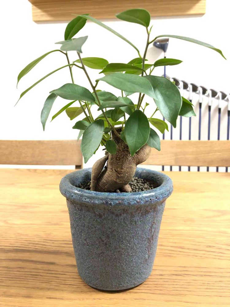 これは以前紹介しましたガジュマルですが、おしゃれな鉢を見つけたので鉢替えしました😊