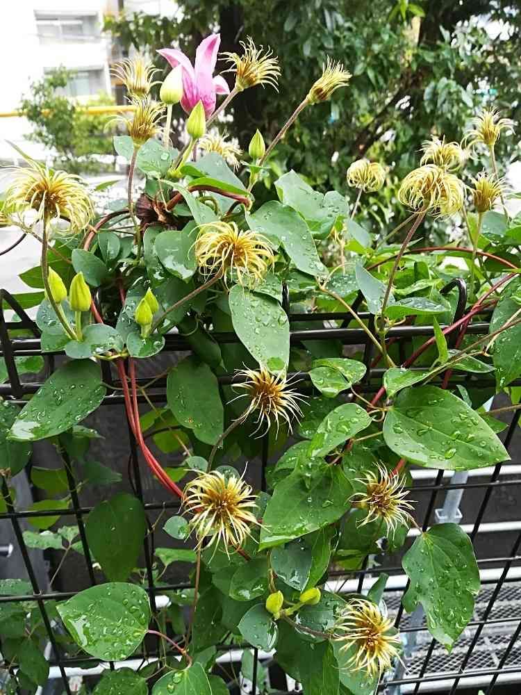 クレマチスプリンセスダイアナのお花が散った後もかわいい。🤗切り戻ししたいけどまだつぼみが…