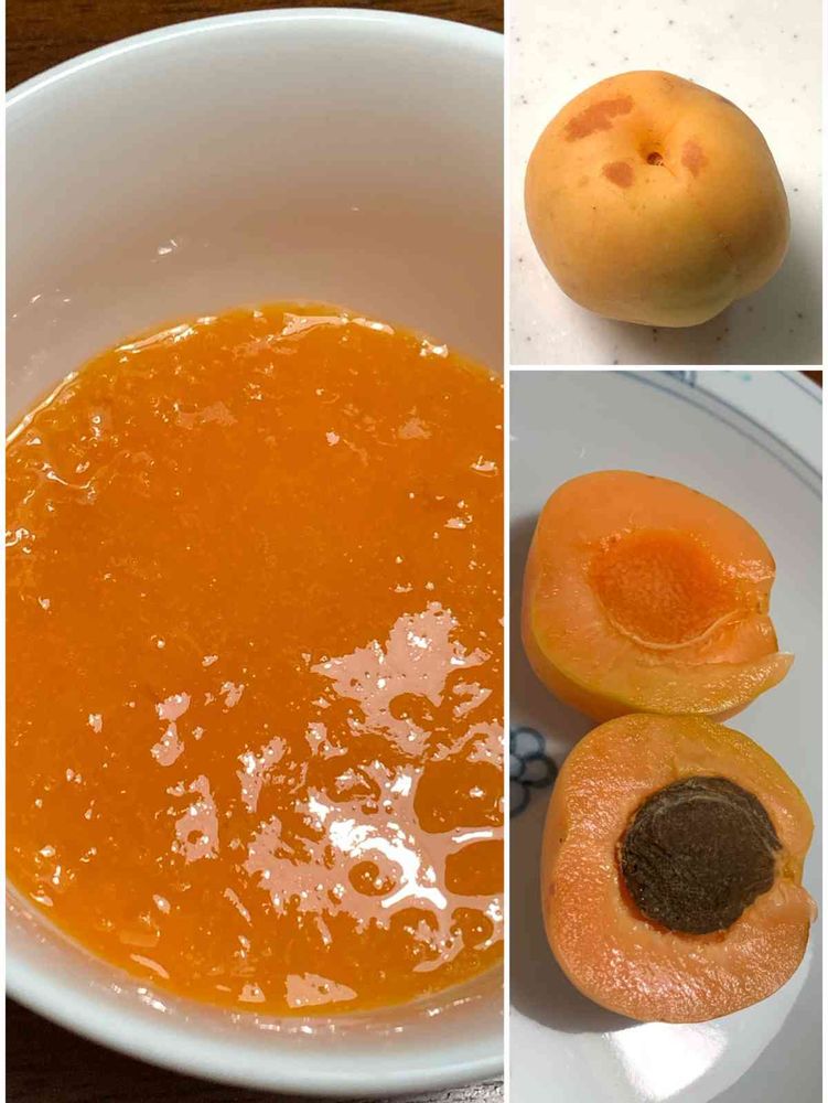 数日、冷蔵庫に置いてから、大さじ1の砂糖と刻んだ杏を容器で和えてレンジでジャムにしてみました😊