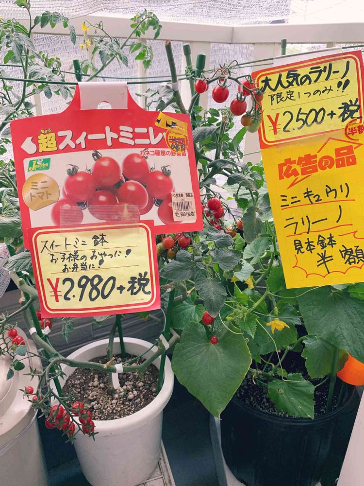 しかも見本苗だから何もしなくてもトマトは沢山なってるし!キュウリも小さいのが沢山花もついてるからまだまだこれからだよね✨