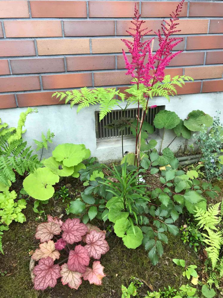 ヒューケラジョージアピーチは不調ですが、シダの下のライムリッキーは回復傾向✨本当に日陰が好きなんですね!!