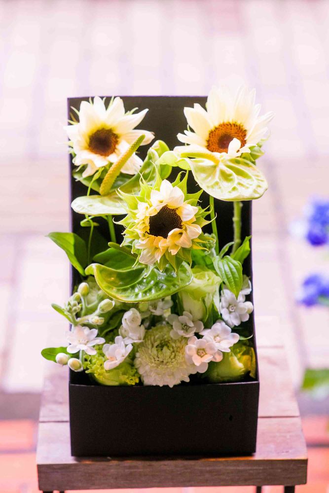 ひまわり【ホワイトナイト】を使った父の日用のサプライズBOXフラワー~トール型~
