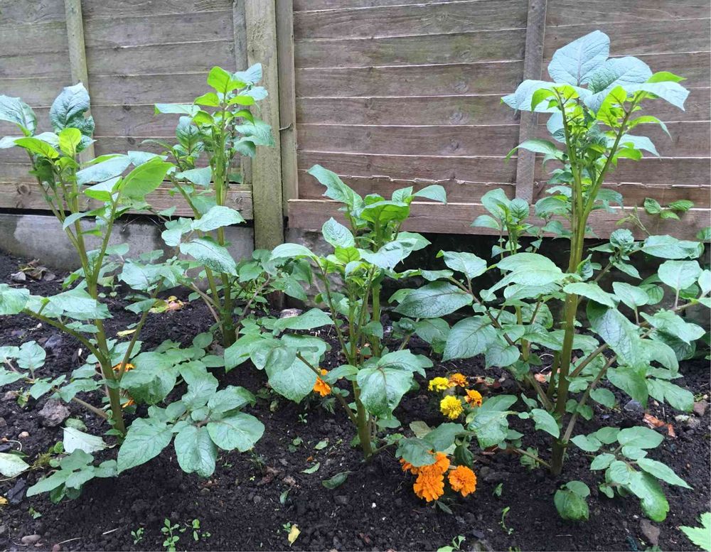 ジャガイモ🥔が雨の中すくすく伸びてます😆。今日2回目の追肥と土寄せをしたのであとは花が咲いて収穫を待つだけです。✨