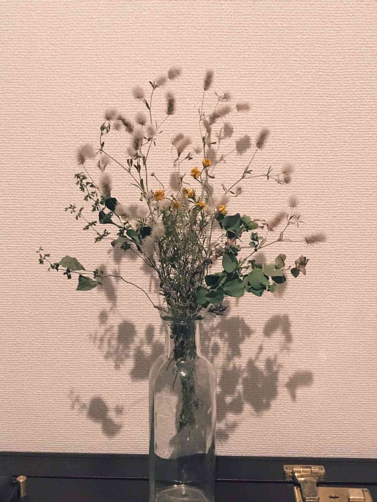 なんでもかんでもドライフラワーにして(笑)100均花瓶に飾り付けてみました(*´ω`*)