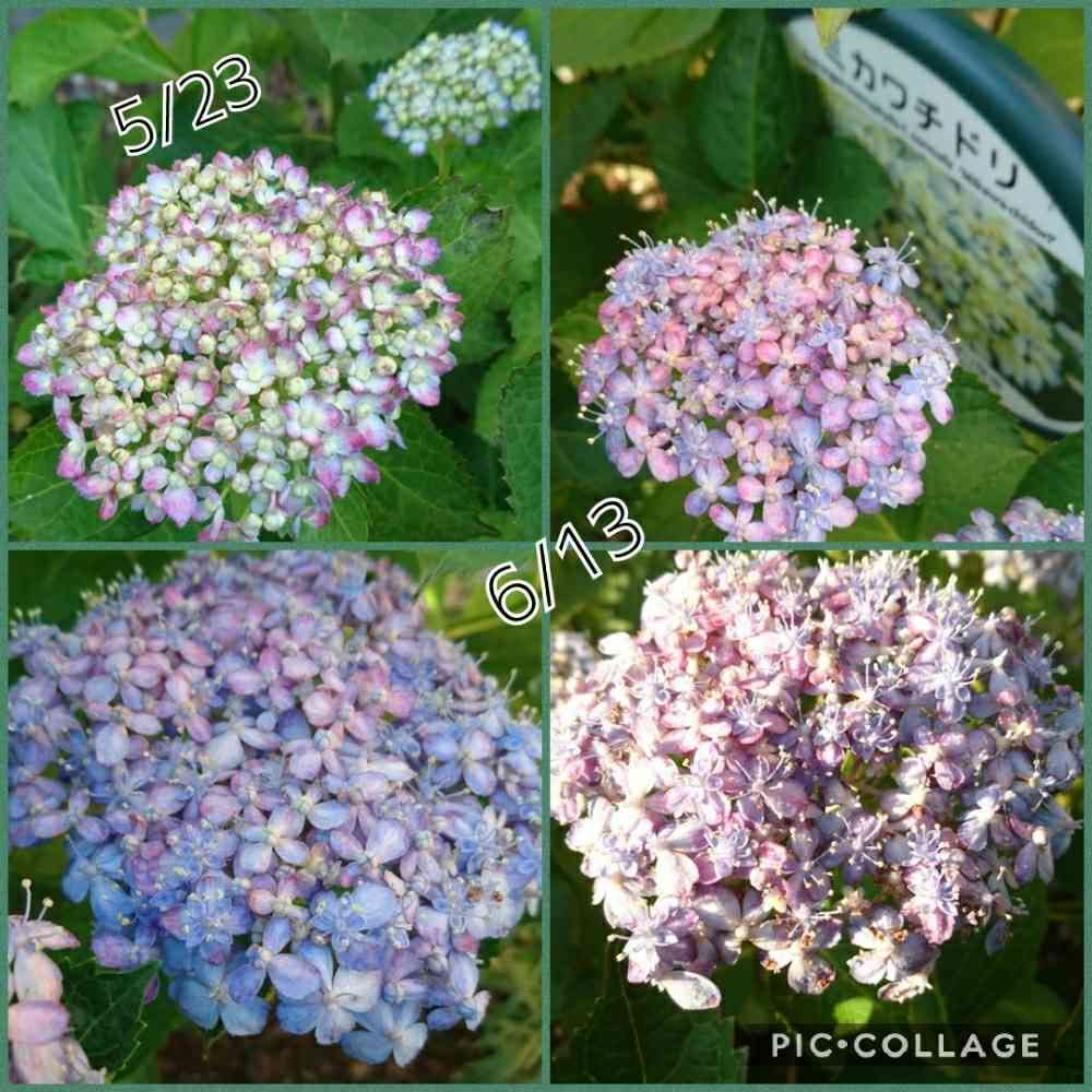 5/23←「みどりのまとめ紫陽花①」にpicしてあります。に比べて色づいてきていました‼この場所で初めて見た品種です‼