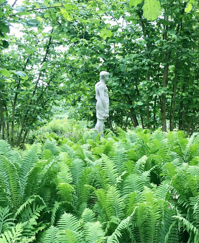 そしてシシングハースト庭園の2枚目、これは私が個人的に気に入った風景です。鬱蒼と生い茂るシダの中に、銅像がぽつんと立っています。幻想的でした。