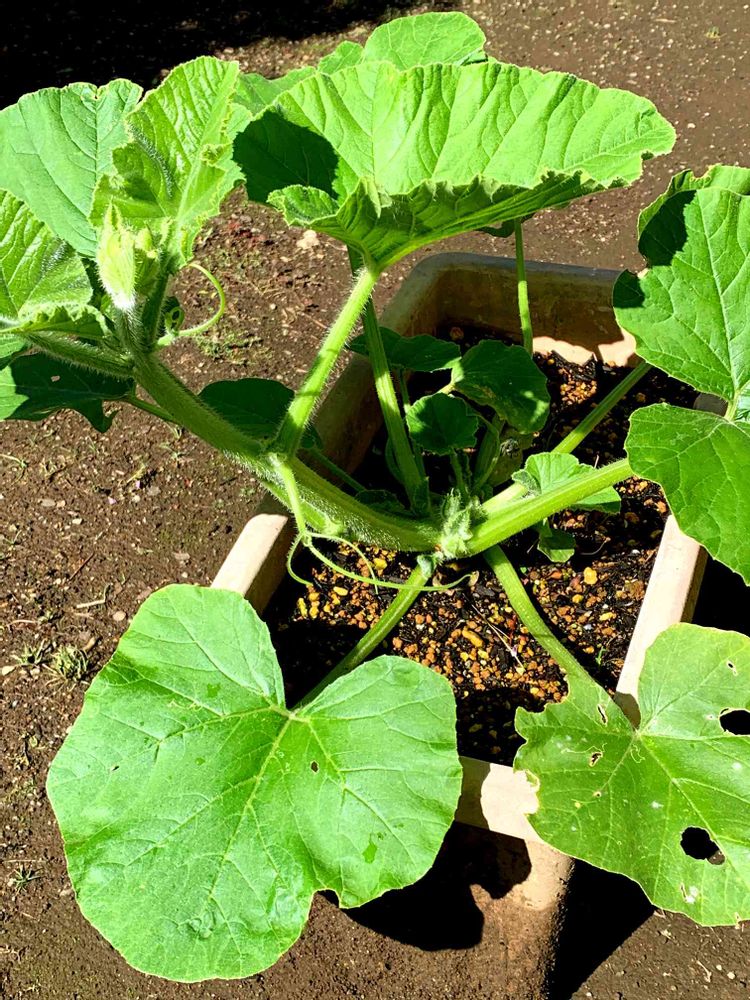 JAはだのから頂いたジャンボカボチャの蔓が伸び始めました。一昨年は失敗しましたが今年はなんとか実ってくださいな!!