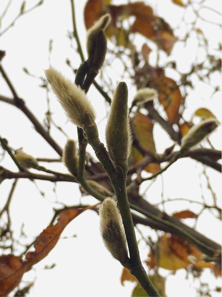 以前雪で折れてしまったこの状態のコブシの枝を持ち帰り花瓶に挿しておいたら、小さなコブシの花が咲きました✨ビロードのような毛に覆われて春を待つんですね〜😊